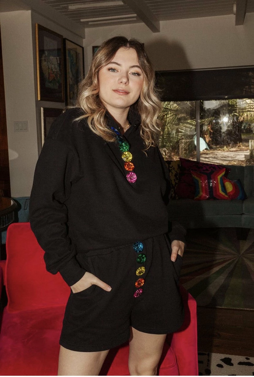 Rhinestone Button Henley Shorts