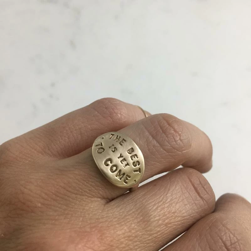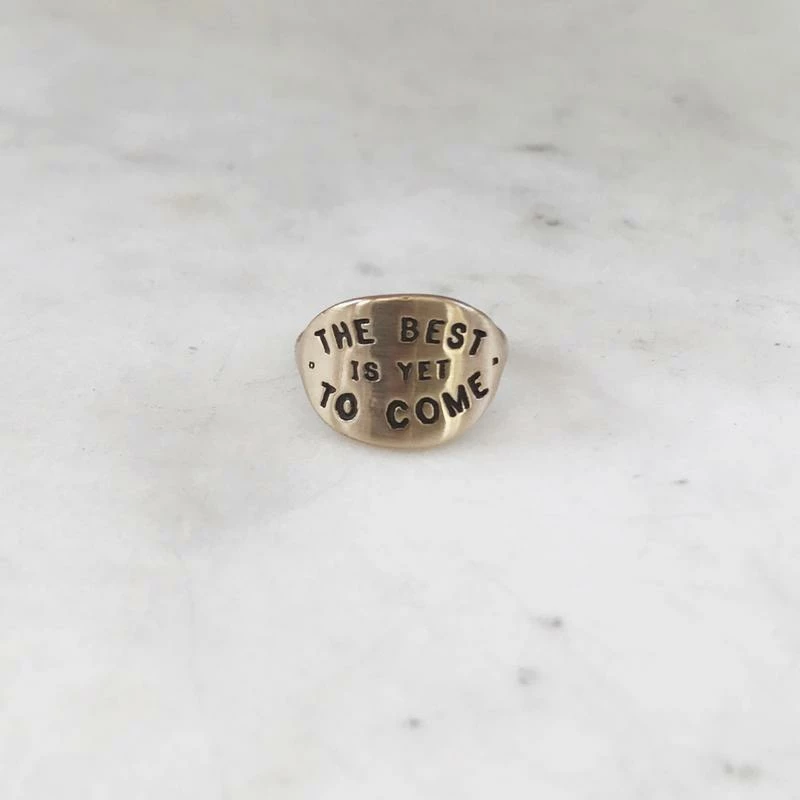 Wear The Best Is Yet To Come Ring as a daily reminder to keep on keepin’ on. This ring is hand-stamped stamped in bronze.