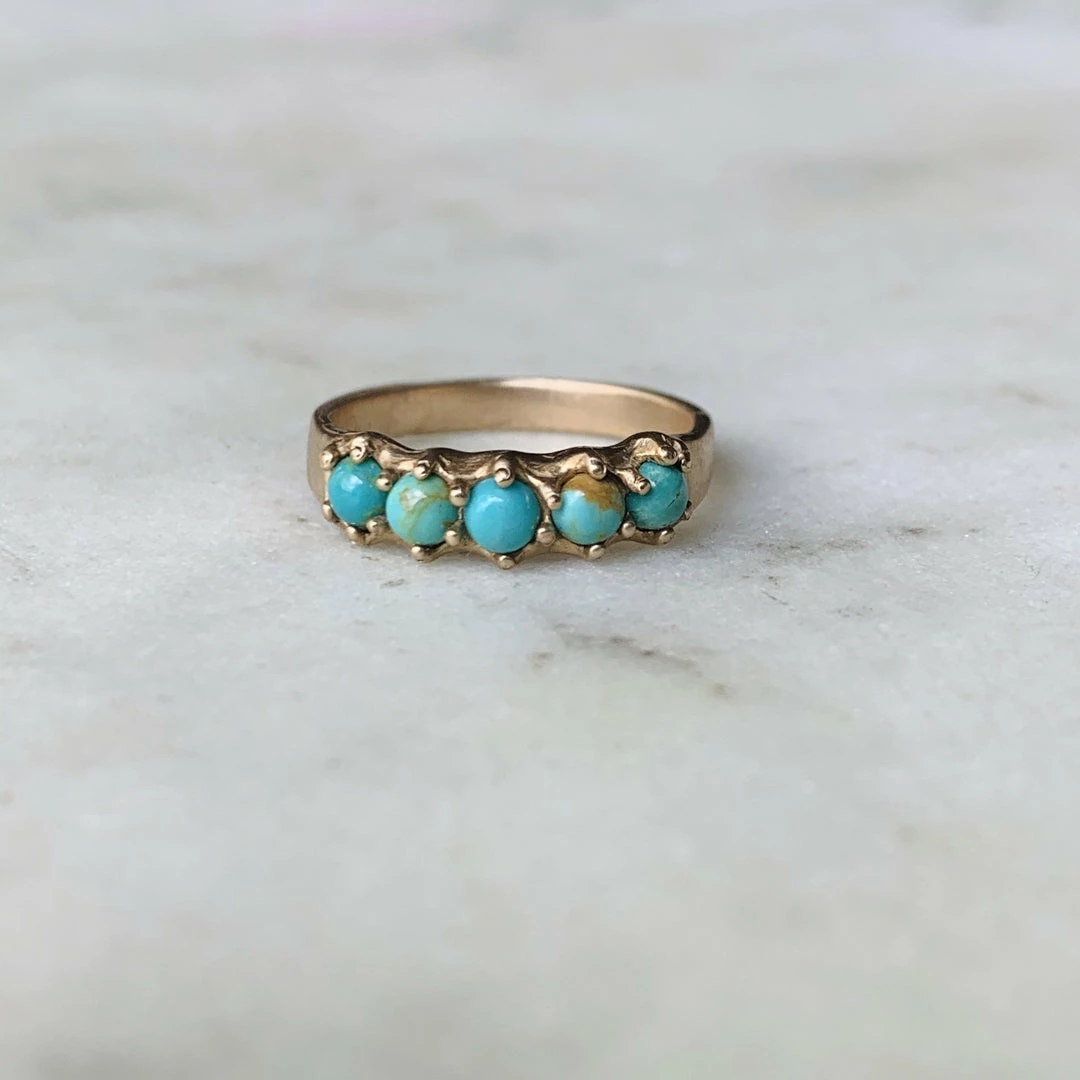 Five 3-millimeter stones are set in this simple and delicate ring.Â
