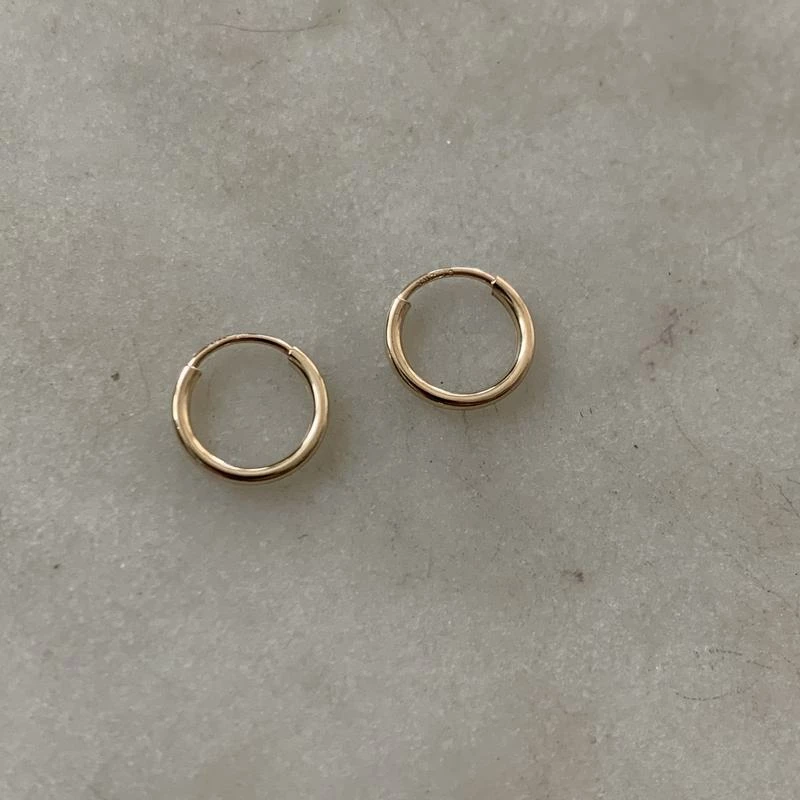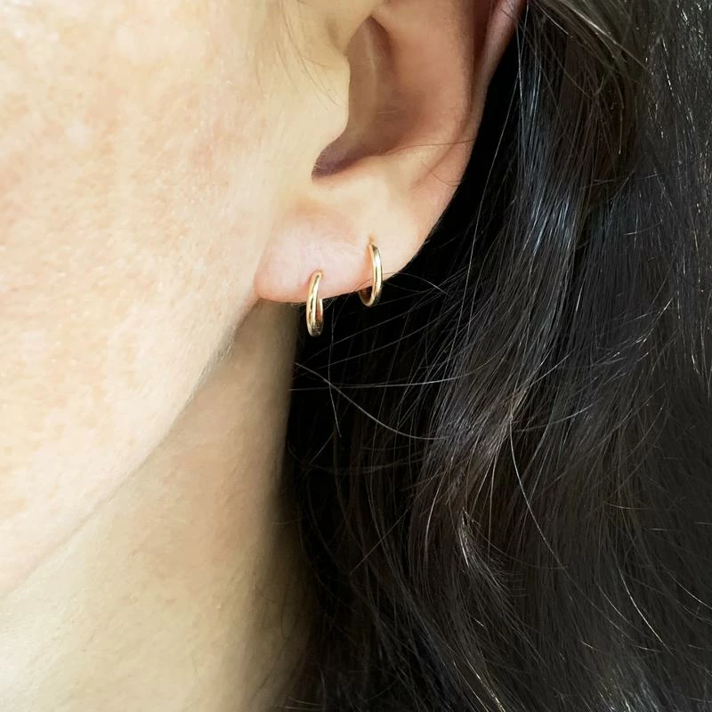 These tiny, 10-millimeter hoop earrings are gold-filled and perfect for everyday wear!