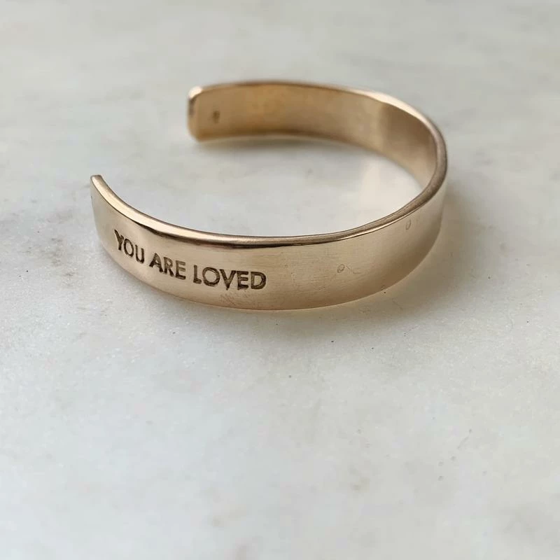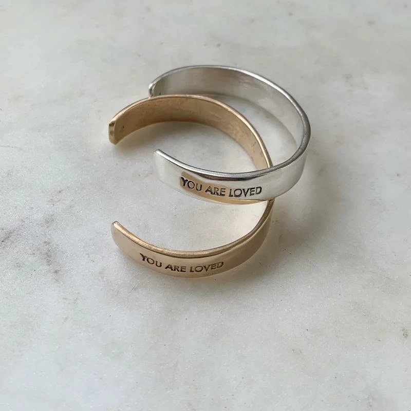 Wear the You Are Loved Cuff on days that you might feel lonely… But just know, YOU ARE LOVED. The petite cuff is hand-stamped and cast in bronze.Â