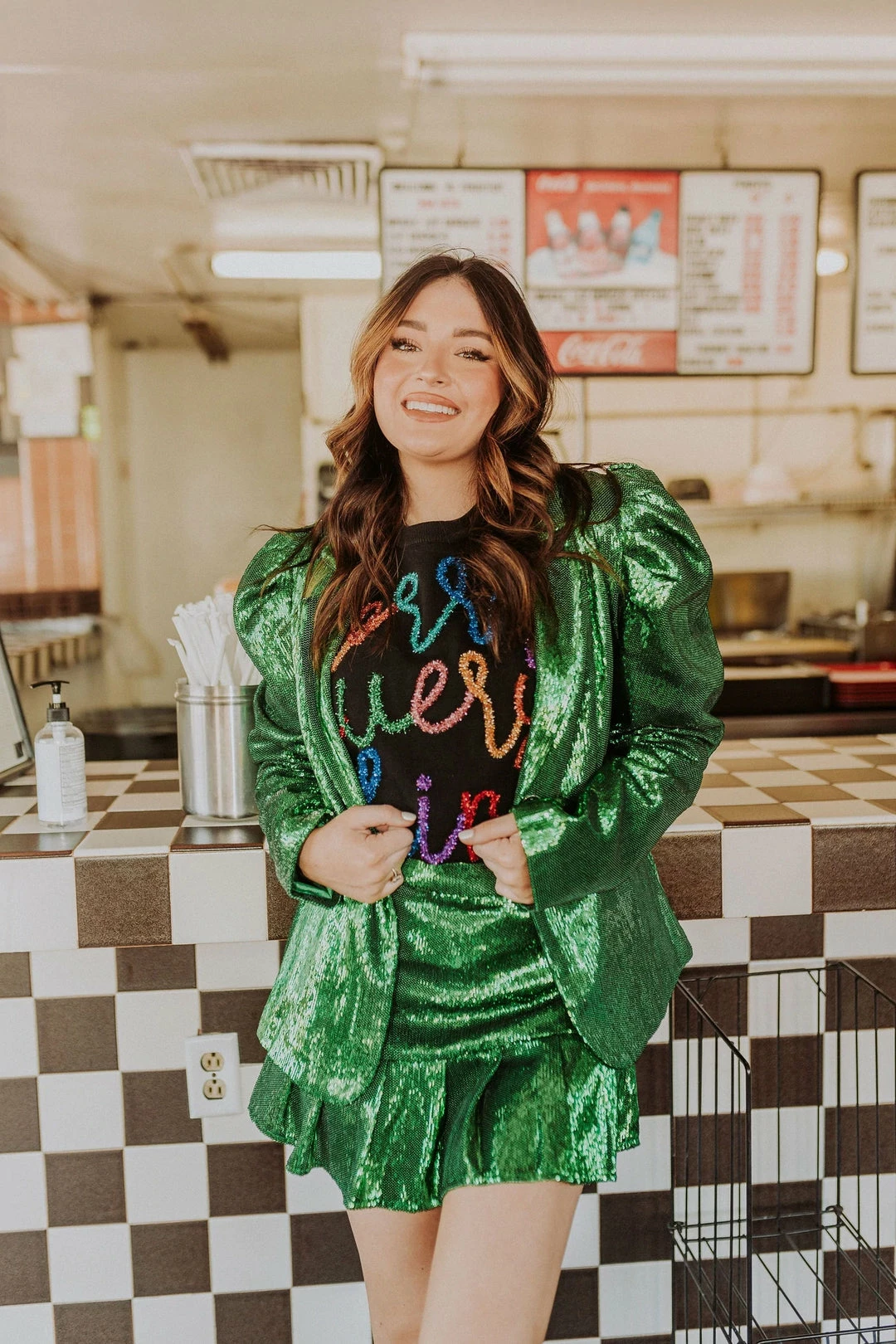 Queen of Sparkles Green Poof Sleeve Sequin Blazer