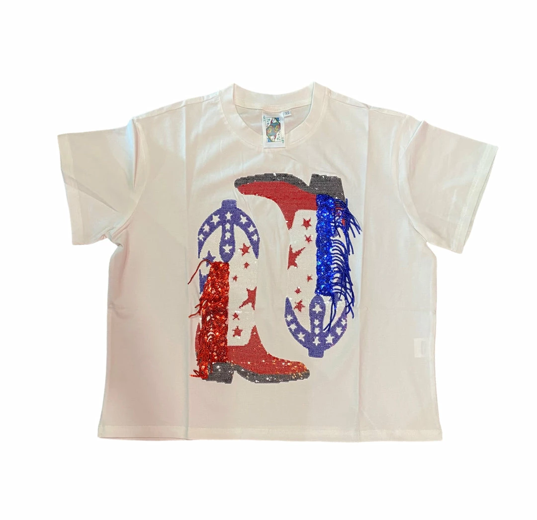 Queen of Sparkles Red & Blue Fringe Boots Tee