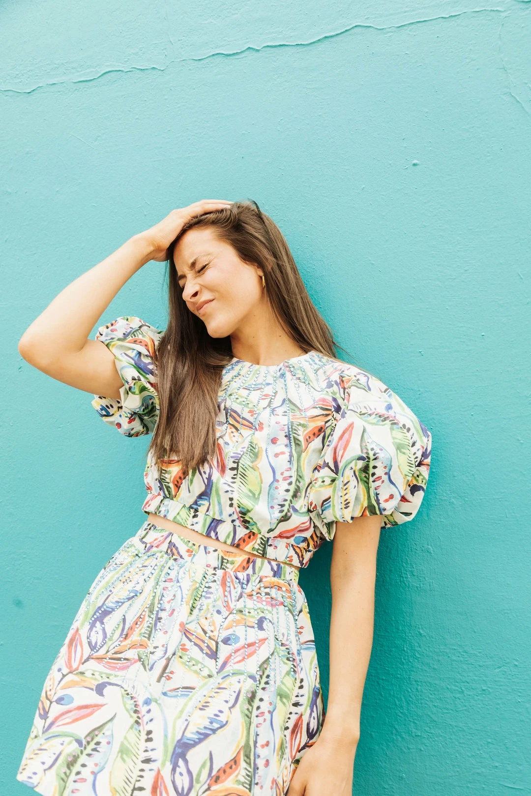 The Queen of Sparkles Tropical Puff Sleeve Jeweled Crop Top. Perfect For All Of Your Summer Excursions!