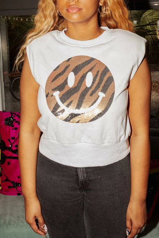 Striped Smiley Shoulder Pad Sweatshirt Tank