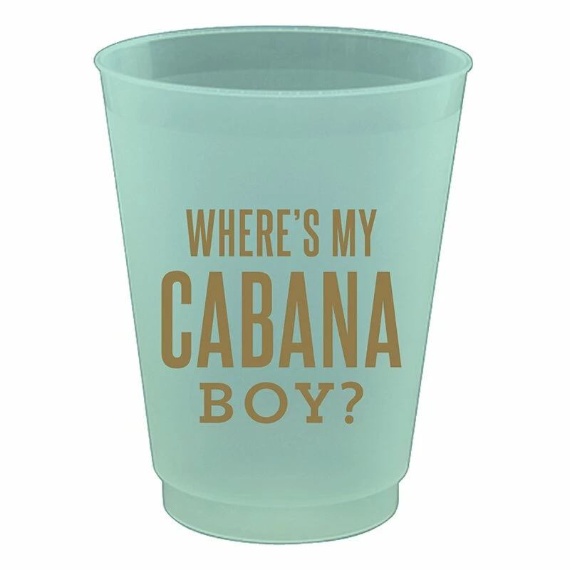- Mint Green Cups With “Where’s My Cabana Boy?” In Gold Lettering