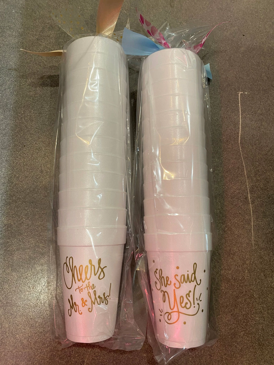 - Styles: She said YES!, Cheeres to the Mr. and Mrs.