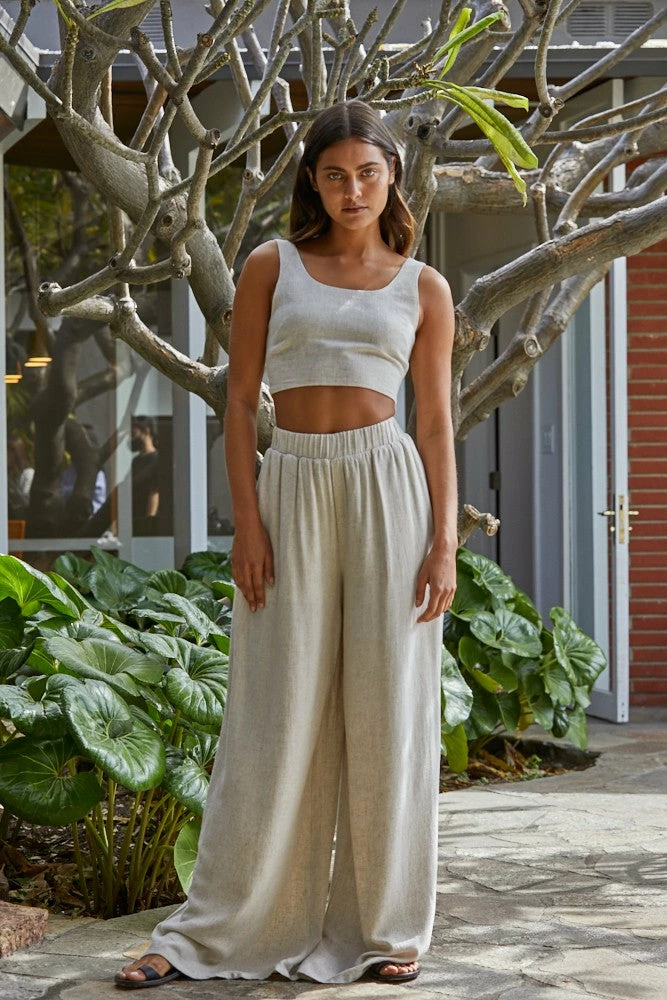 - Scoop Neck Sleeveless Crop Top With Bottom Elastic Band