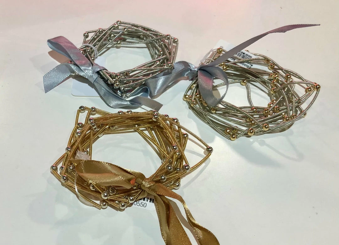 | Color | Gold with silver beads, Silver with silver beads, Silver with gold beads |