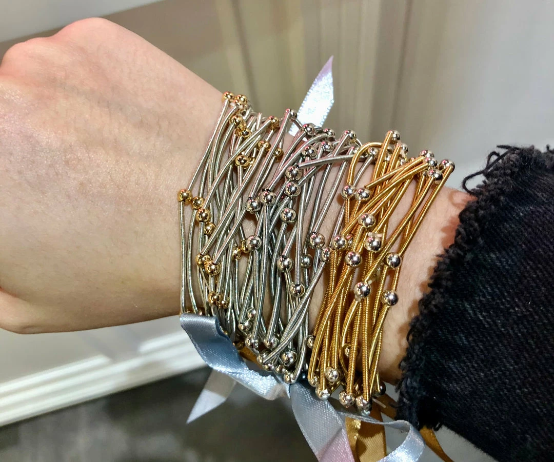 Colors: gold with silver beads, silver with gold beads, silver with silver beadsÂ