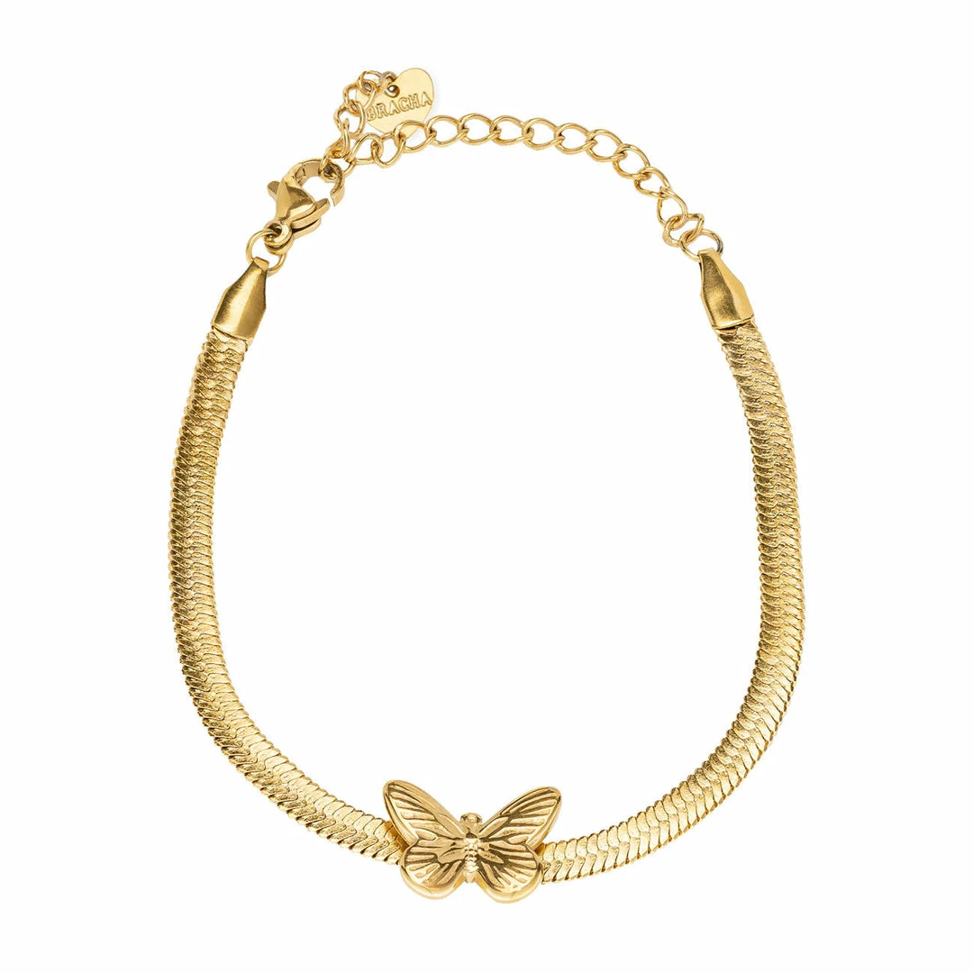 - Sleek Herringbone Bracelet with Butterfly Accent Charm