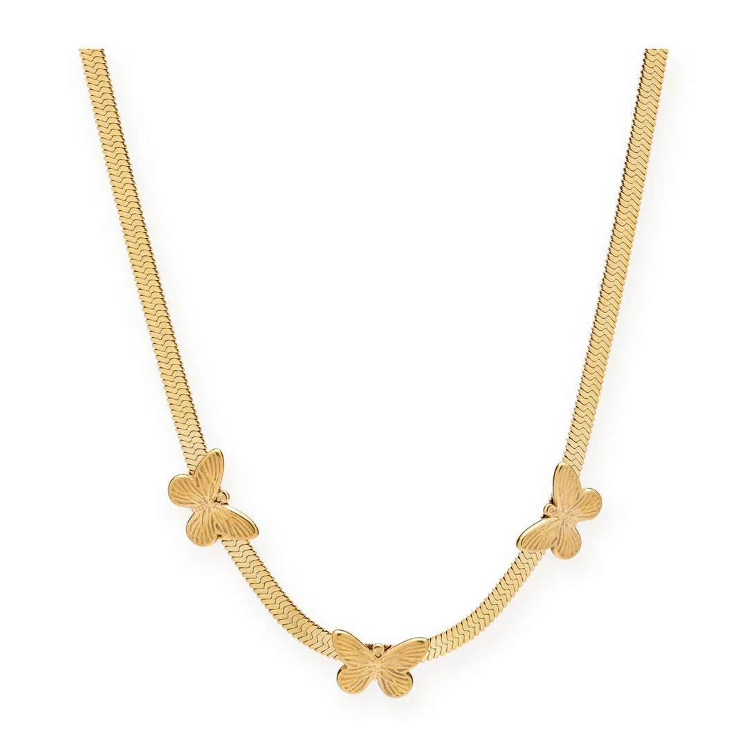 - Sleek Herringbone Style Necklace with Vintage Butterfly Accents