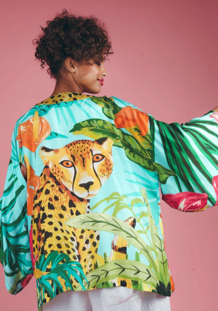 A glorious modal and viscose blend, this Cheetah Kimono Jacket is wild and wonderful – the perfect piece for throwing over your shoulders and hitting the town! Equally suited to wrap around your sleepwear – or to elevate your dinner party look, you will never want to take it off! Comes with exclusive limited-edition packaging which is fully recyclable.