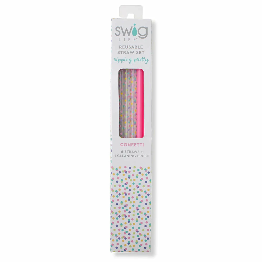 - 4 printed straws, 2 solid color straws, and 1 cleaning brush