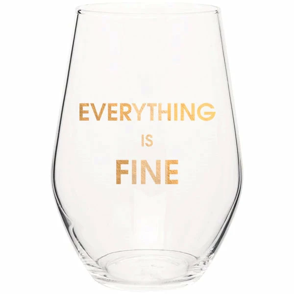 Crush your wine in style with our “Everything is Fine” gold foil stemless wine glass.Â