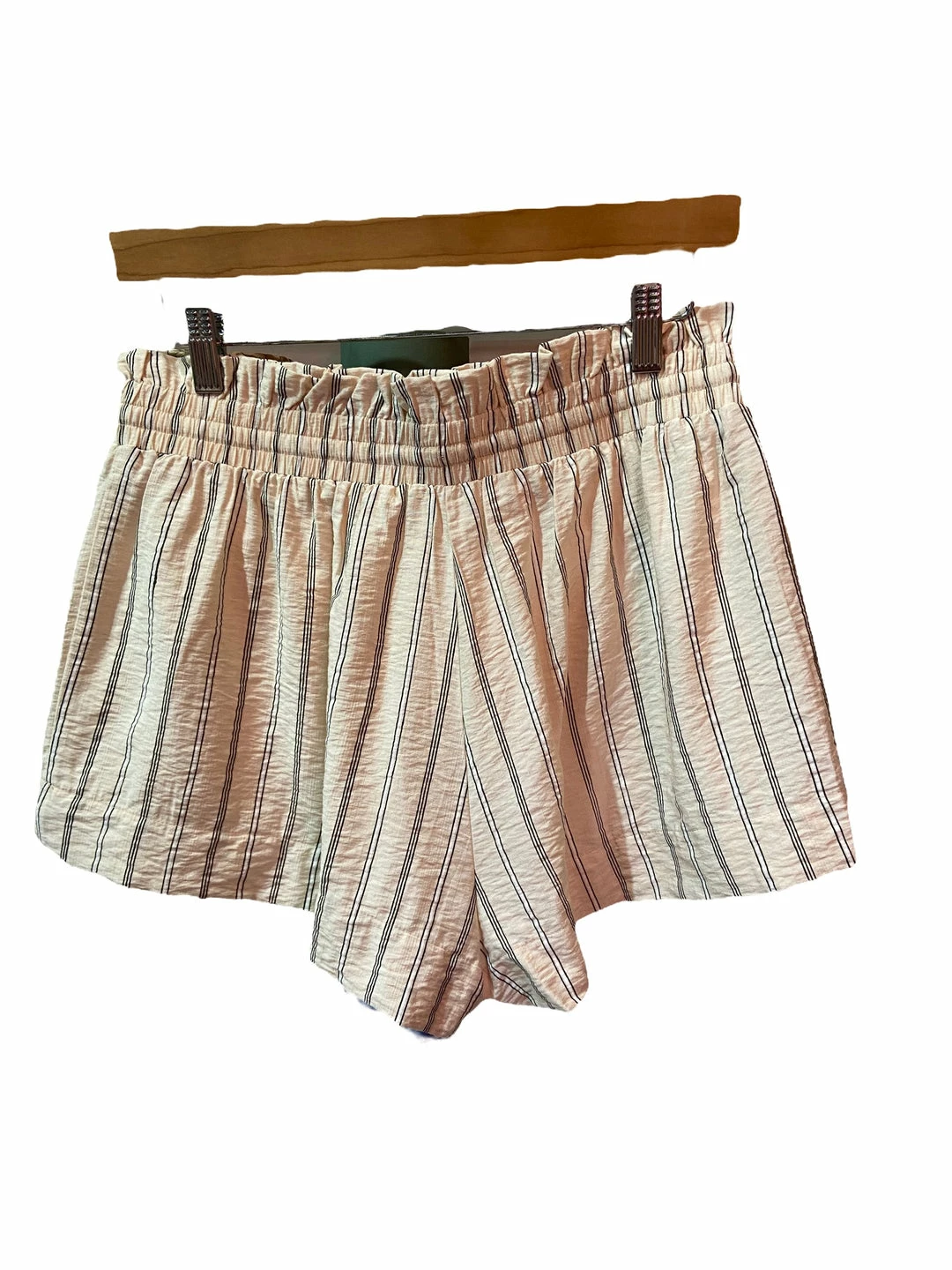 High waist paper bag style shorts, with slouchy design and double front pockets. Smocked waistband for comfortable fit, along with front tie.
