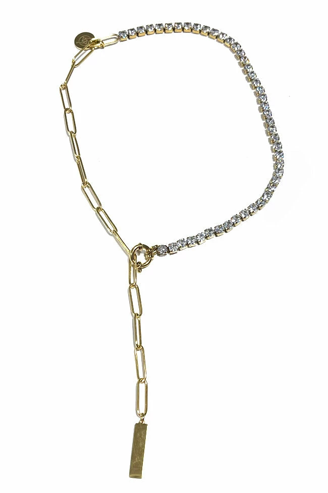 - Crystal Chain Adjustable Lariat Lock Necklace 16″