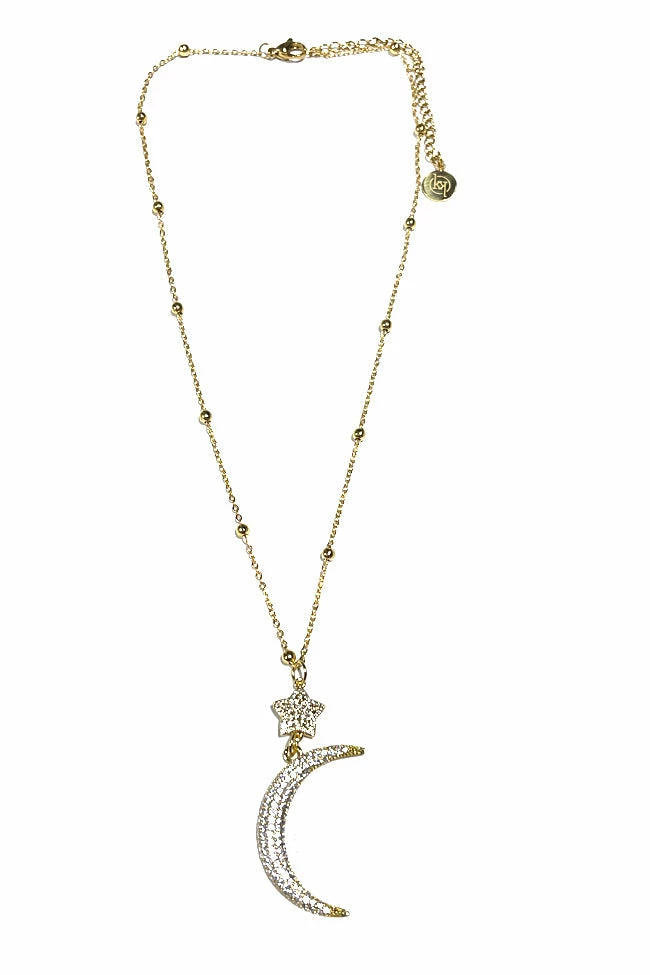 - 18″ Moon Star Drop Lariat Necklace