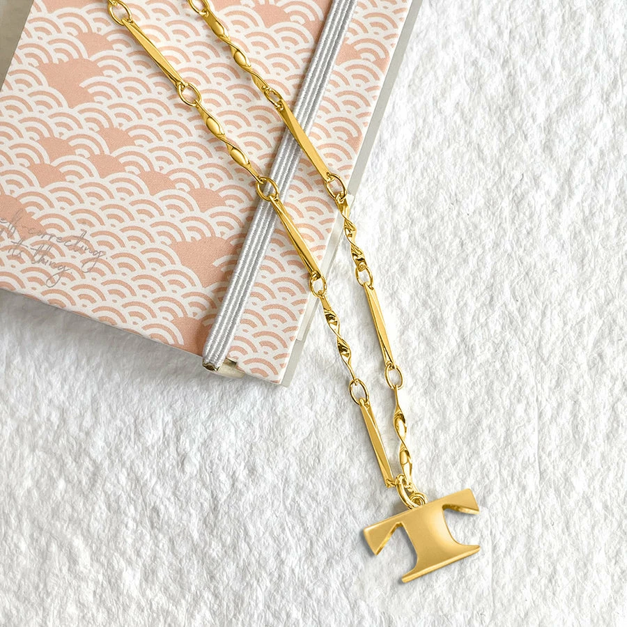 The font used on U.S. currency has been transformed into letter necklaces so that you can channel in your own personal fortune.