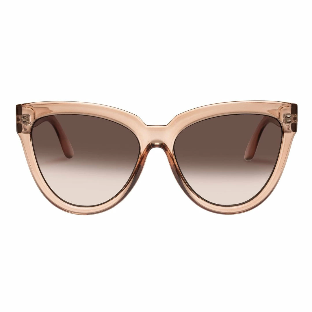 Sharp and sexy, this thick-framed oversize cats eye style offers an everyday look for all face shapes. Finished with a modern flat profile and iconic Le Specs flagstripe metal hardware. Polarized lenses are fitted to eliminate unwanted reflective glare.