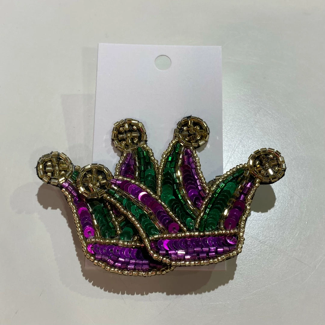 These earrings are a fun accessory to wear for the Mardi Gras season!