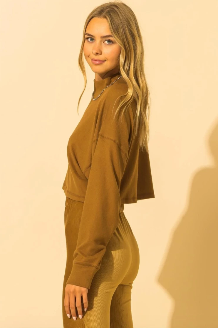 - MOCK NECK OVERSIZED CROP SWEATSHIRT