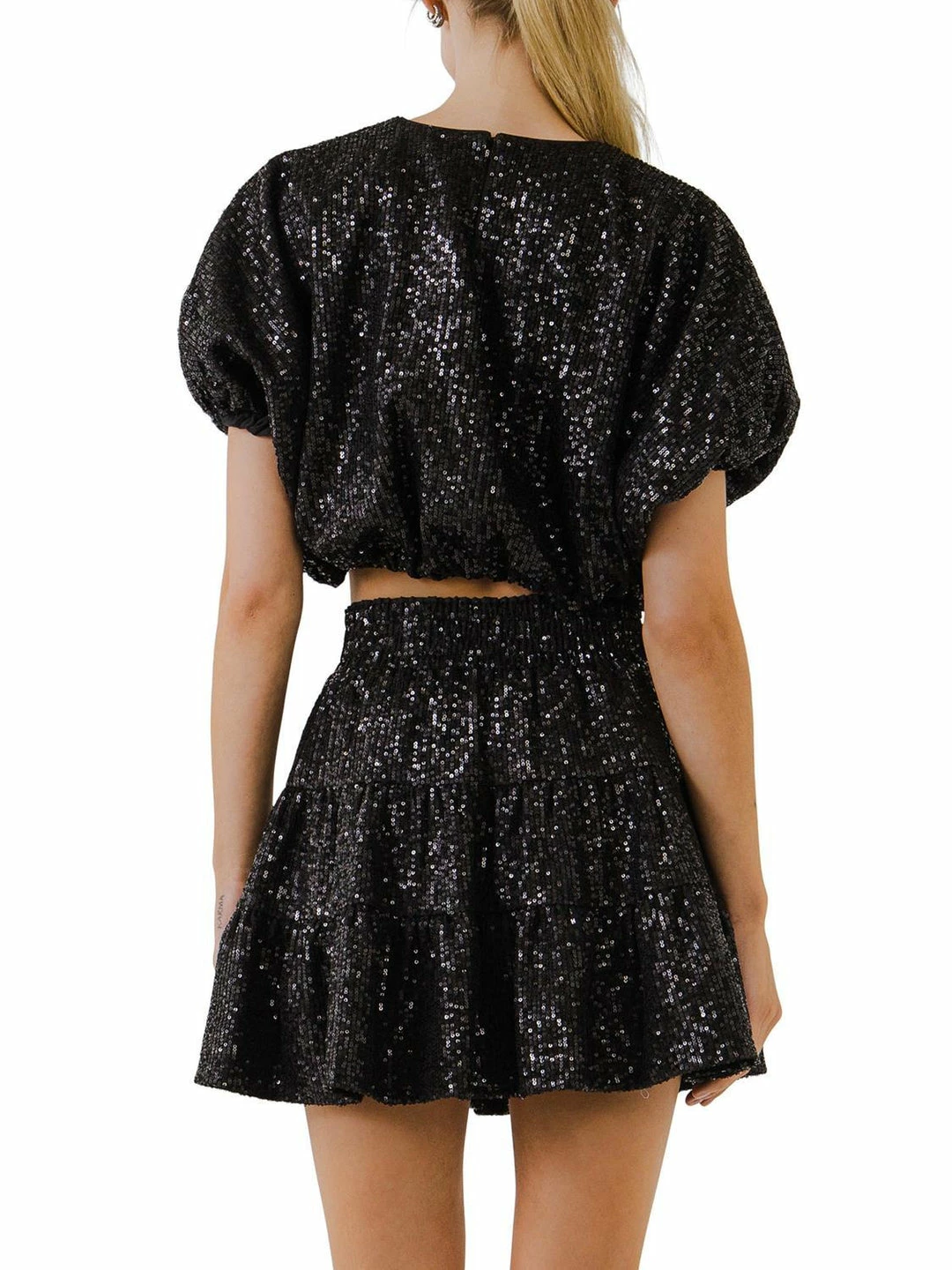 Crop length, elastic inserted at bottom opening, keyhole at back, balloon hem.