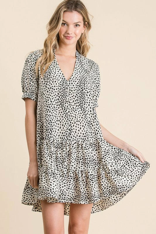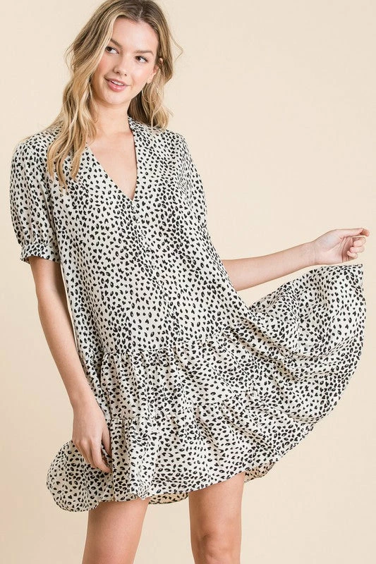 Button Down Cute Mini Dress. Tiered Ruffle Details