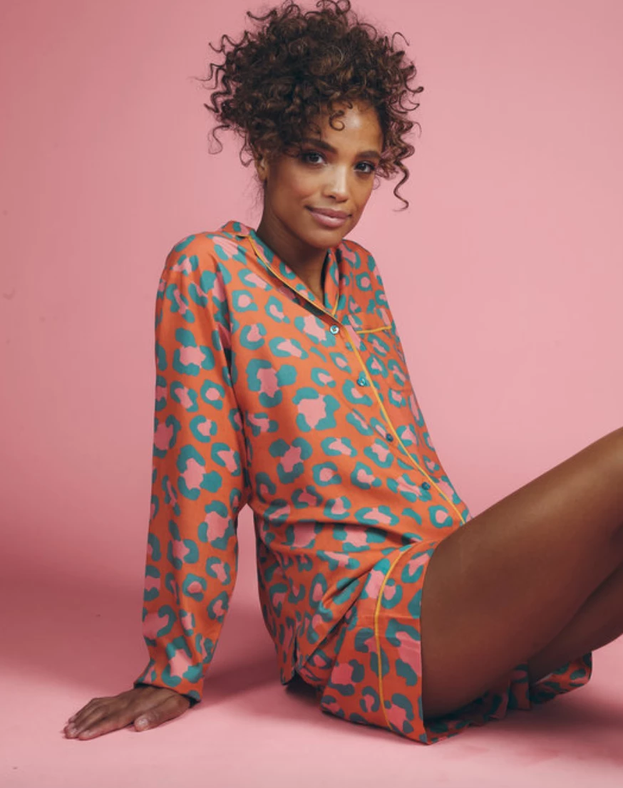 Keep things fresh in our Super soft Summer Pajamas! This Coral Leopard design has just the right amount of 80’s about it and made of 100% Modal it is unbelievably soft. With this iconically powder-ful print you will be planning your pajama days with pride! Every set arrives with complimentary Powder gift bag – making these the perfect gift for yourself or for a friend!