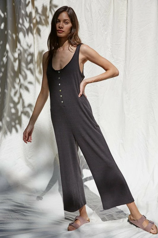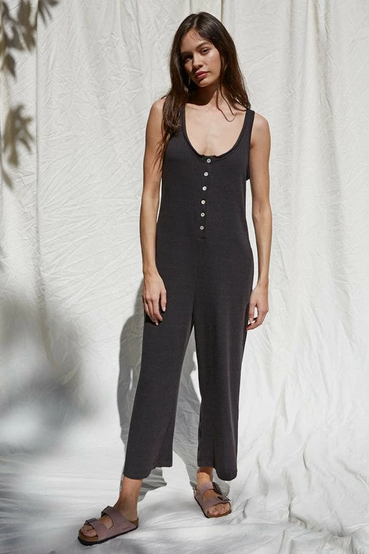 Knit Brushed Triblend Sleeveless Button down Jumpsuit