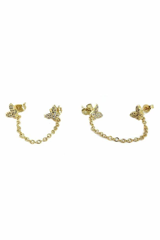 Double Hole Pave Micro Butterfly EarringĀ