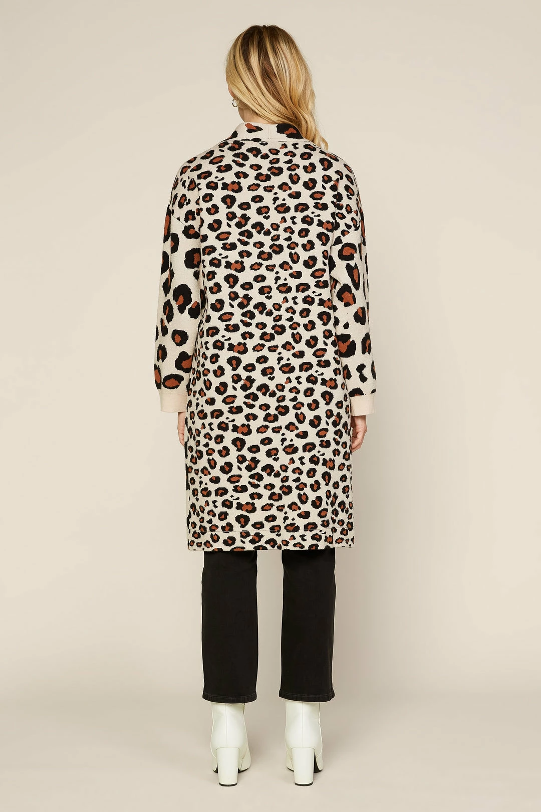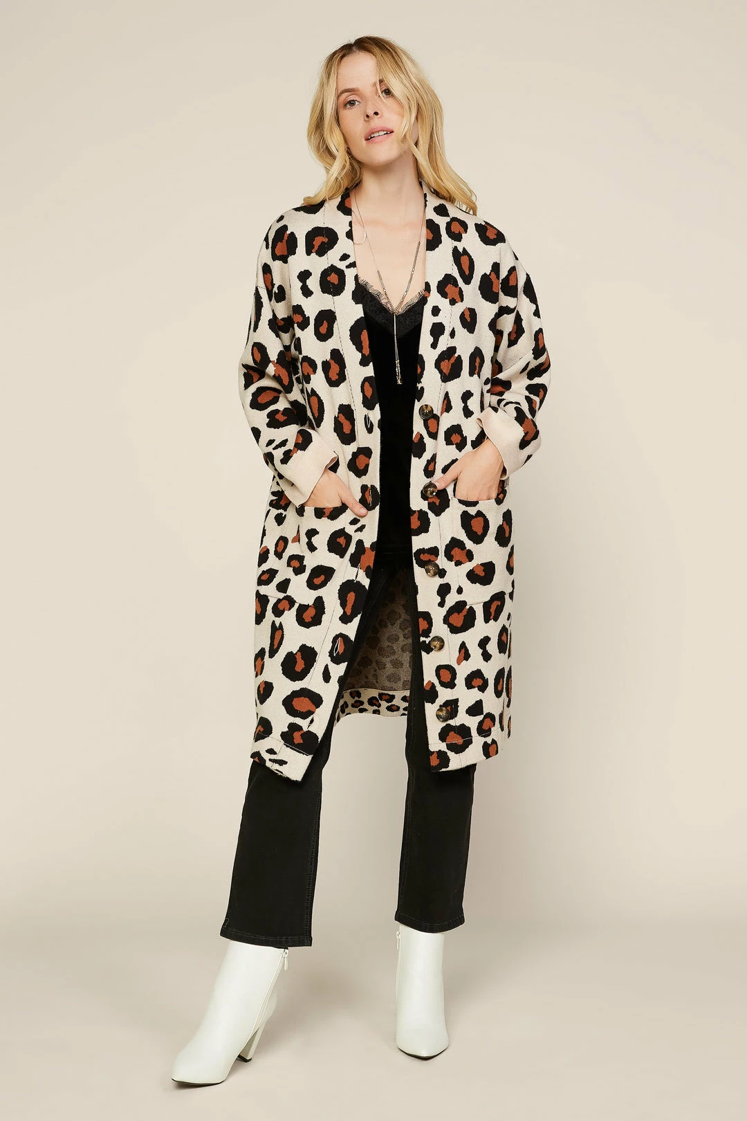 Long Sleeve Midi Leopard Animal Print Cardigan