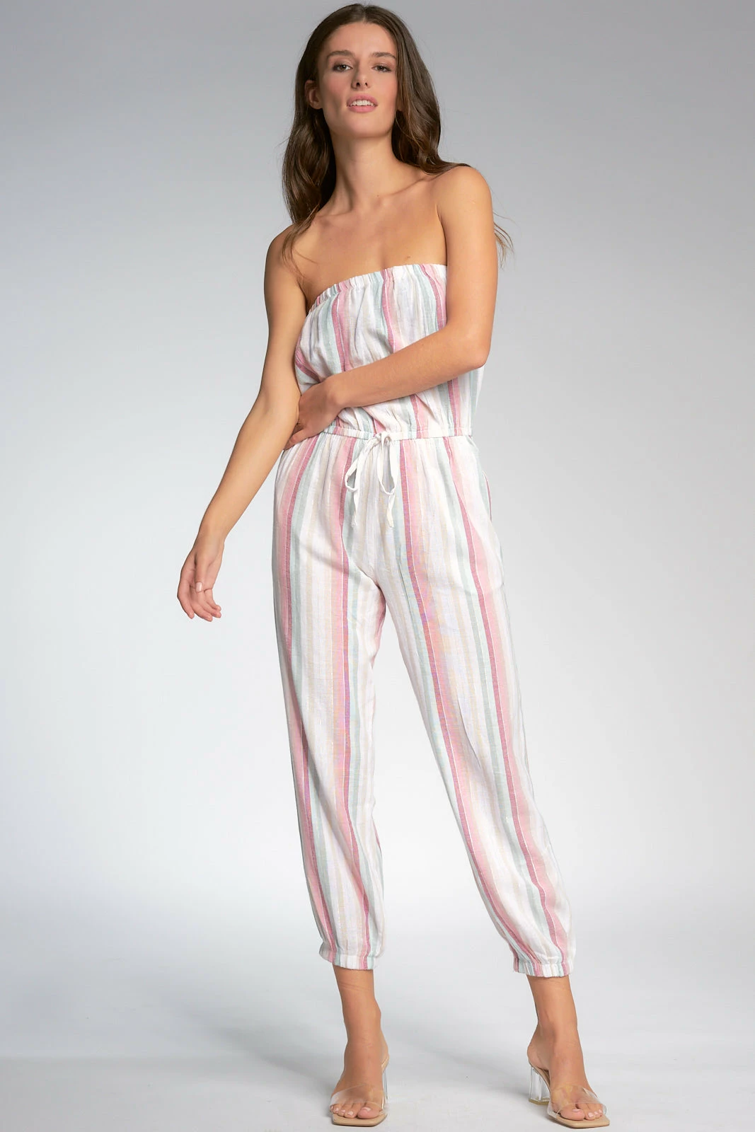 Multicolor Striped Jumpsuit That Ties At The Waist. Perfect For Spring And Summer!
