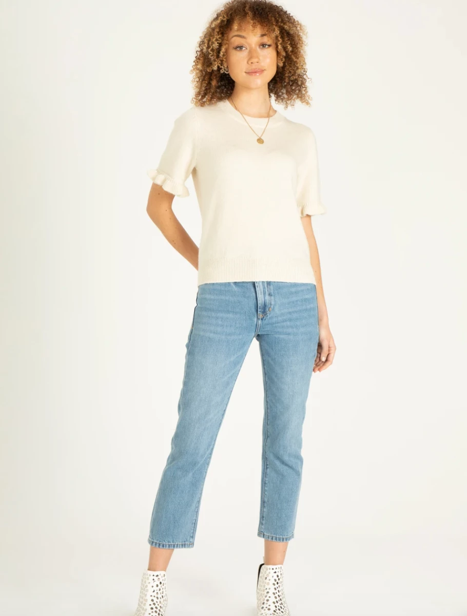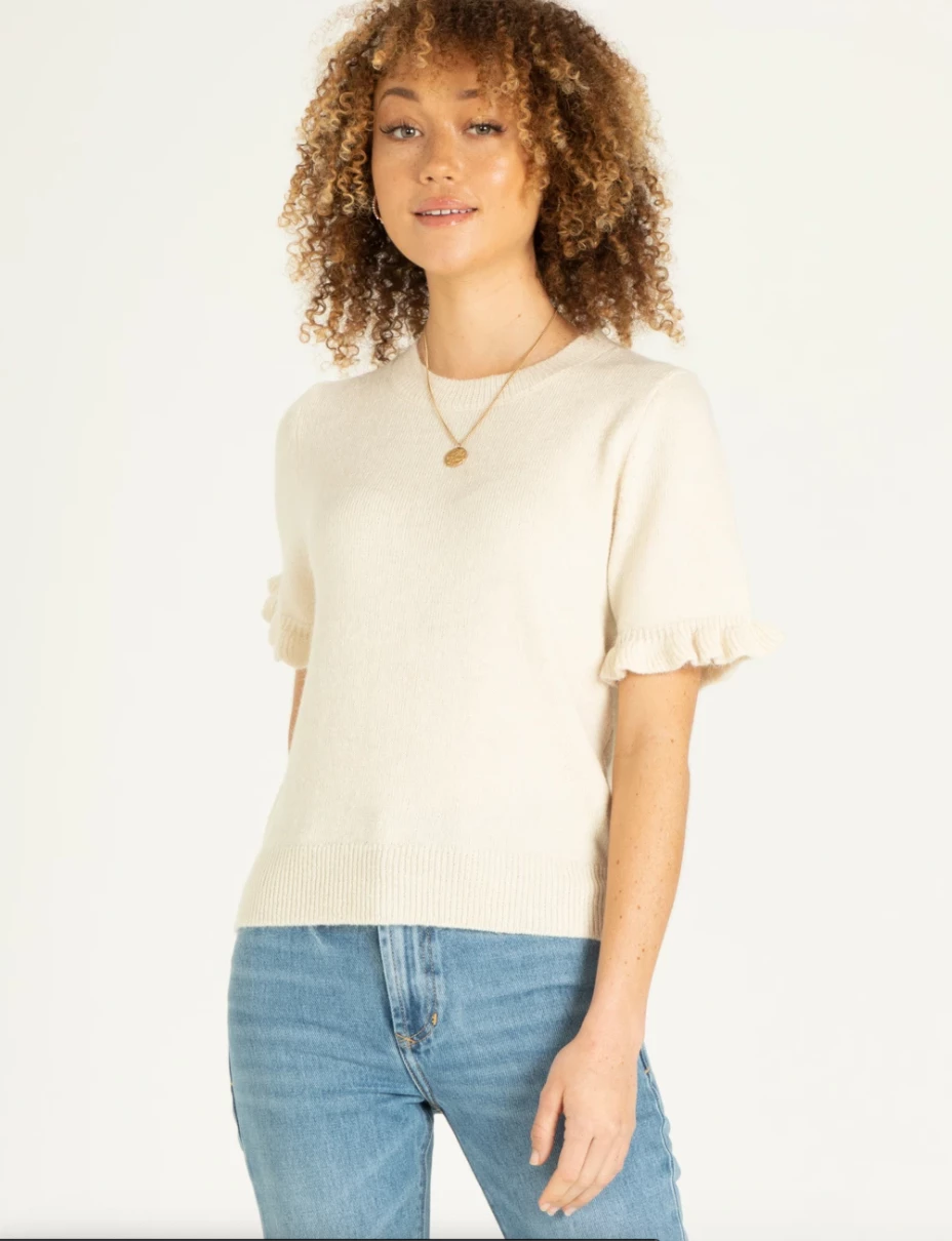 - Crewneck Sweater With Ruffle Elbow Sleeves