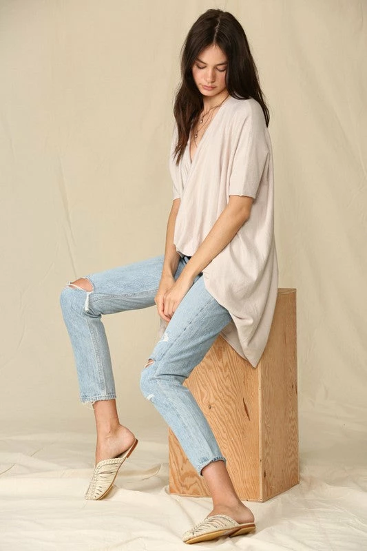 Short Sleeve Knit Sweater Viscose Nylon Polyester Twisted Tunic Top