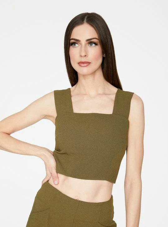 Olive Straight Neck Crop Top