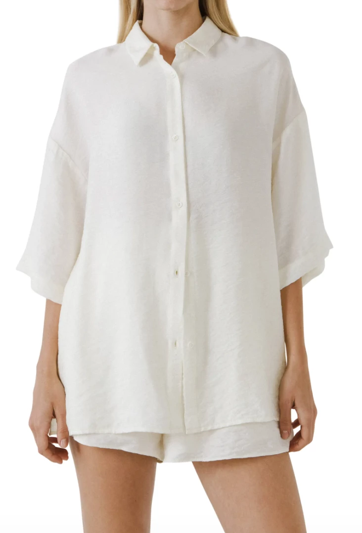 - The classic button-up comes through for weekend wear with an oversize fit and elbow-length sleeves