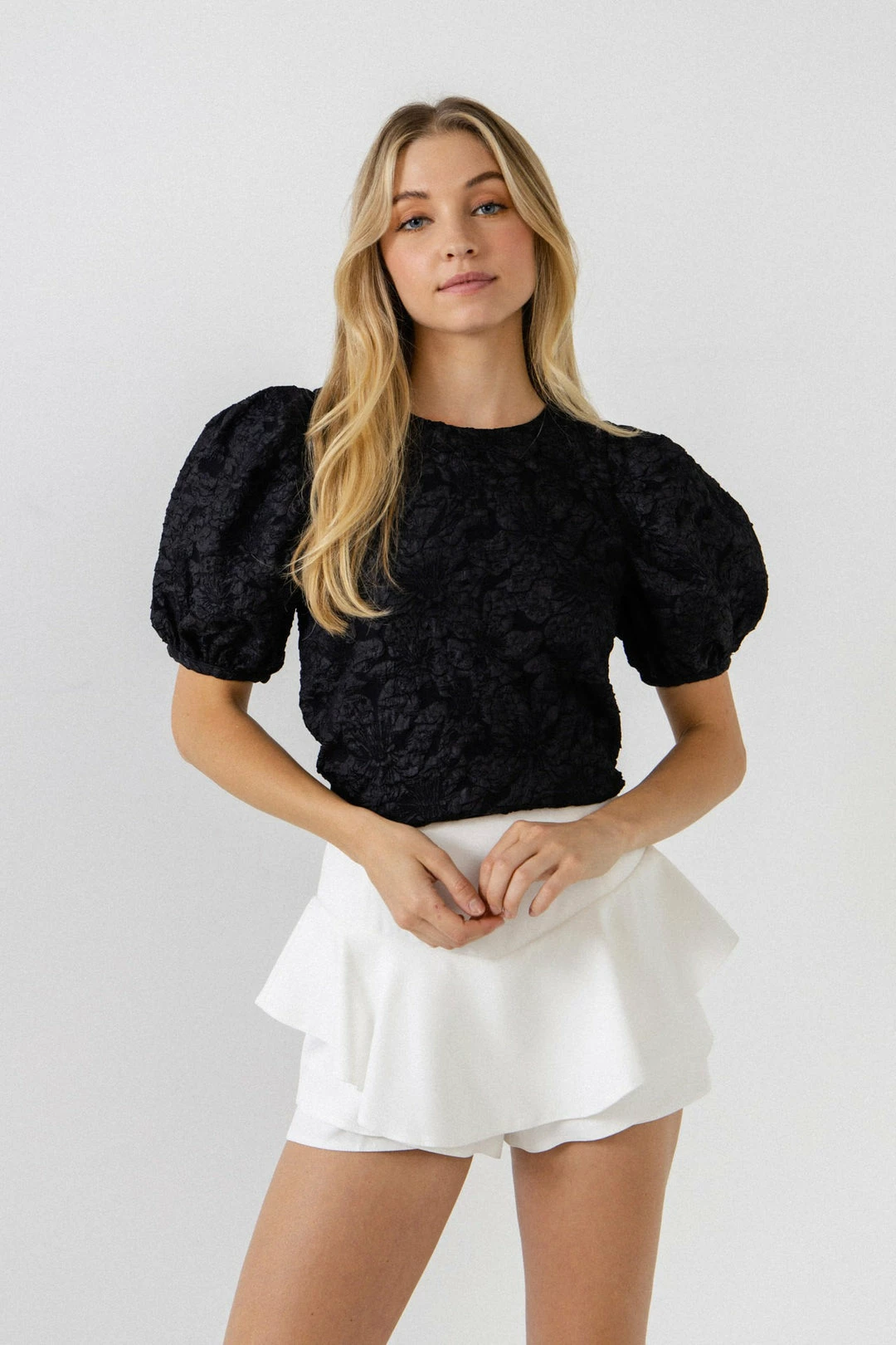 Puff Short Sleeve Textured Top