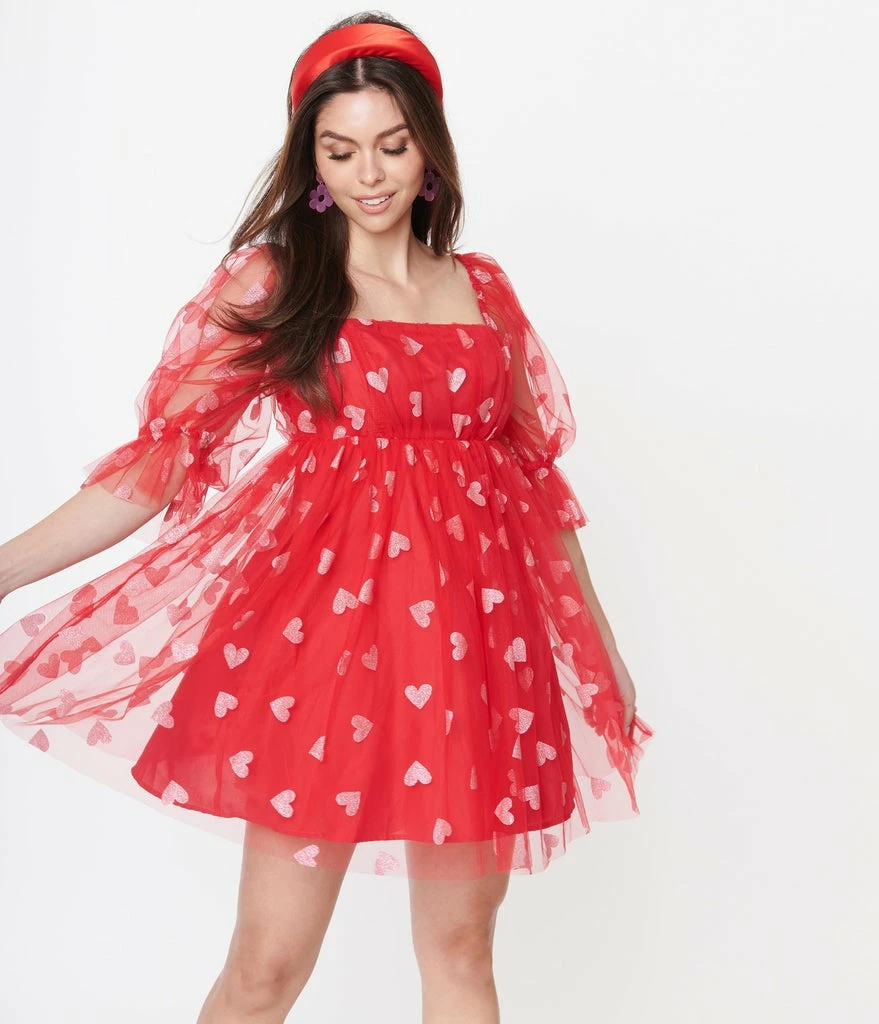 Red & Pink Glitter Hearts Love Babydoll Dress