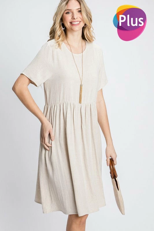 Baby Doll Style Dress With Keyhole And Button. Pockets On The Sides