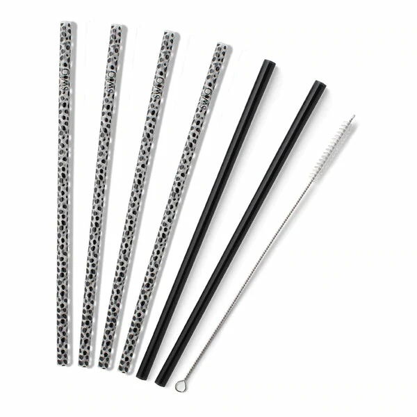 - 4 printed straws, 2 solid color straws, and 1 cleaning brush