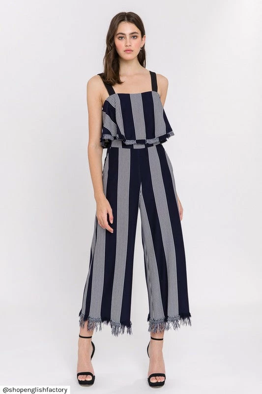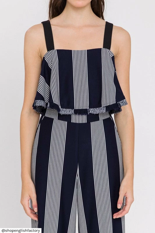 Matching Set: Stripe Fringe Hem Wide Pants