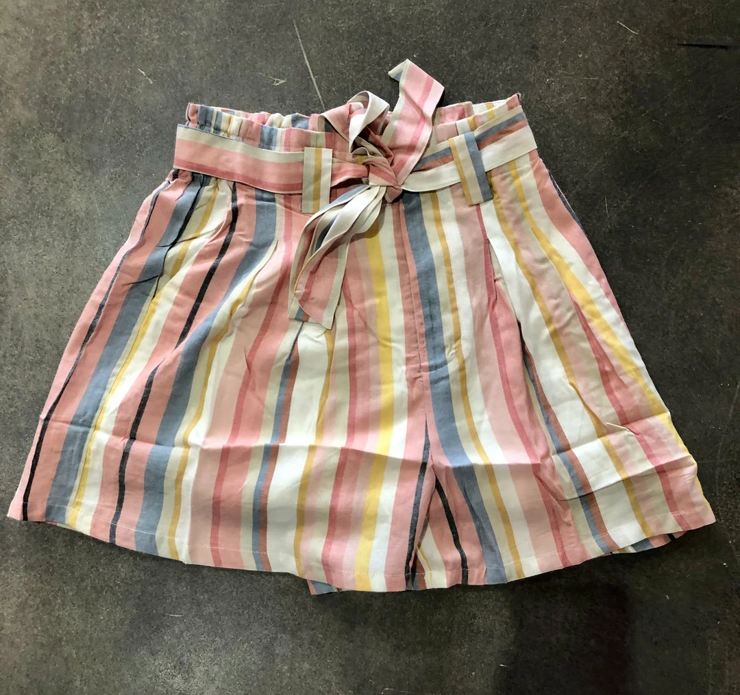 These pastel shorts sit high on the waist with a soft tie at the top. Have a very loose fit and slanted front pockets.Â