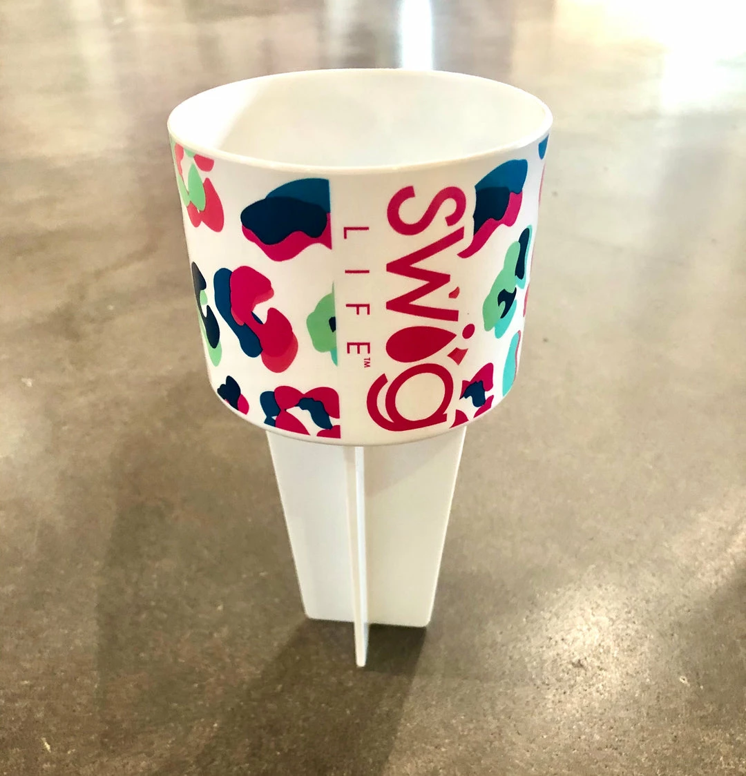 The Beach Buddy sticks directly into the sand to hold your drink, snack, cell phone, sun screen, lip balm or anything else you want easily available and sand-free!