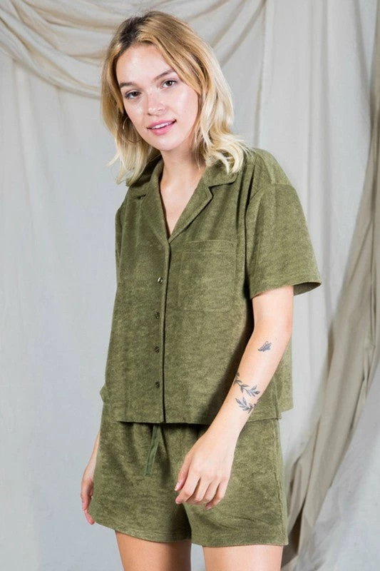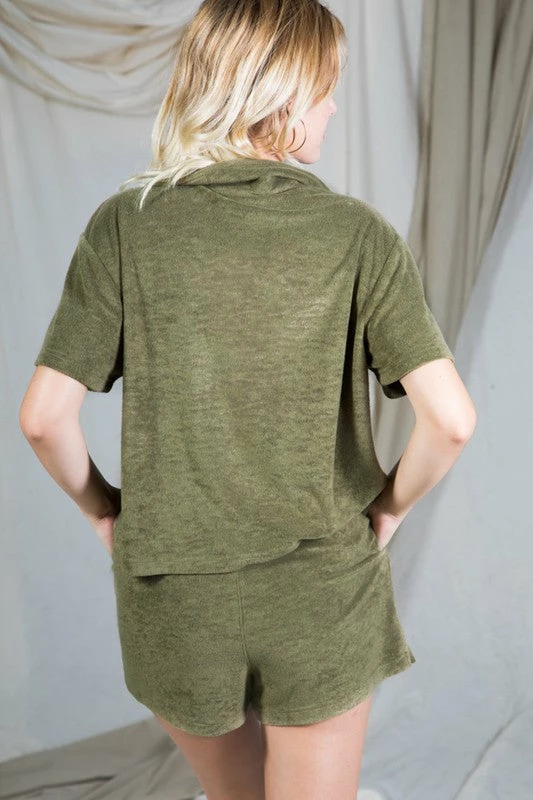 Short Sleeve Terry Collar Shirt Top