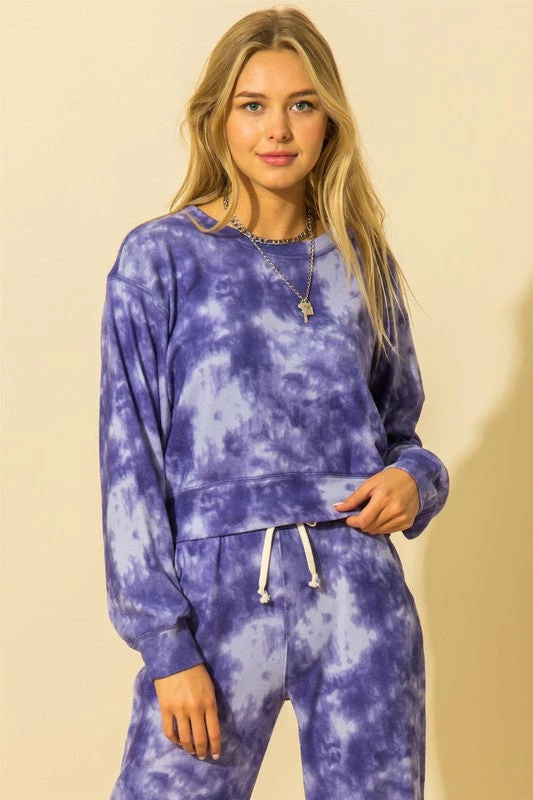 TIE DYE PRINT DROP SHOULDER ROUND NECK LONG SLEEVE SWEATSHIRT