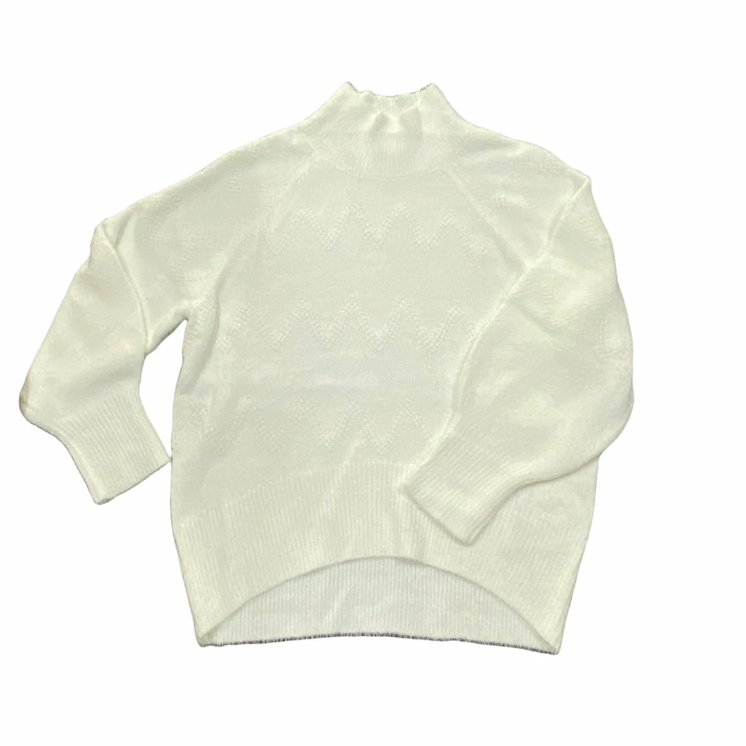 Turtleneck Hi-Low sweater with balloon sleeves.